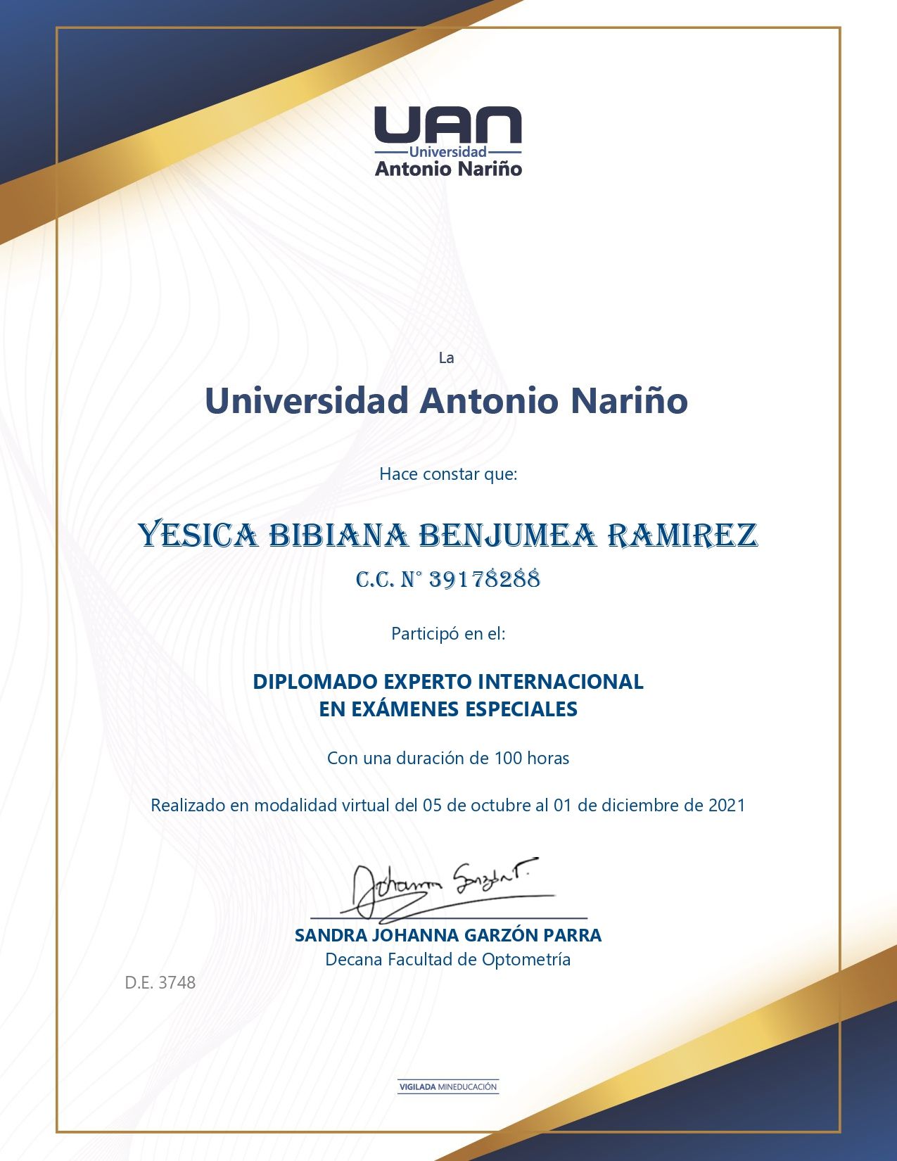 - Universidad Antonio Nariño 2017-2023 / OPTOMETRA