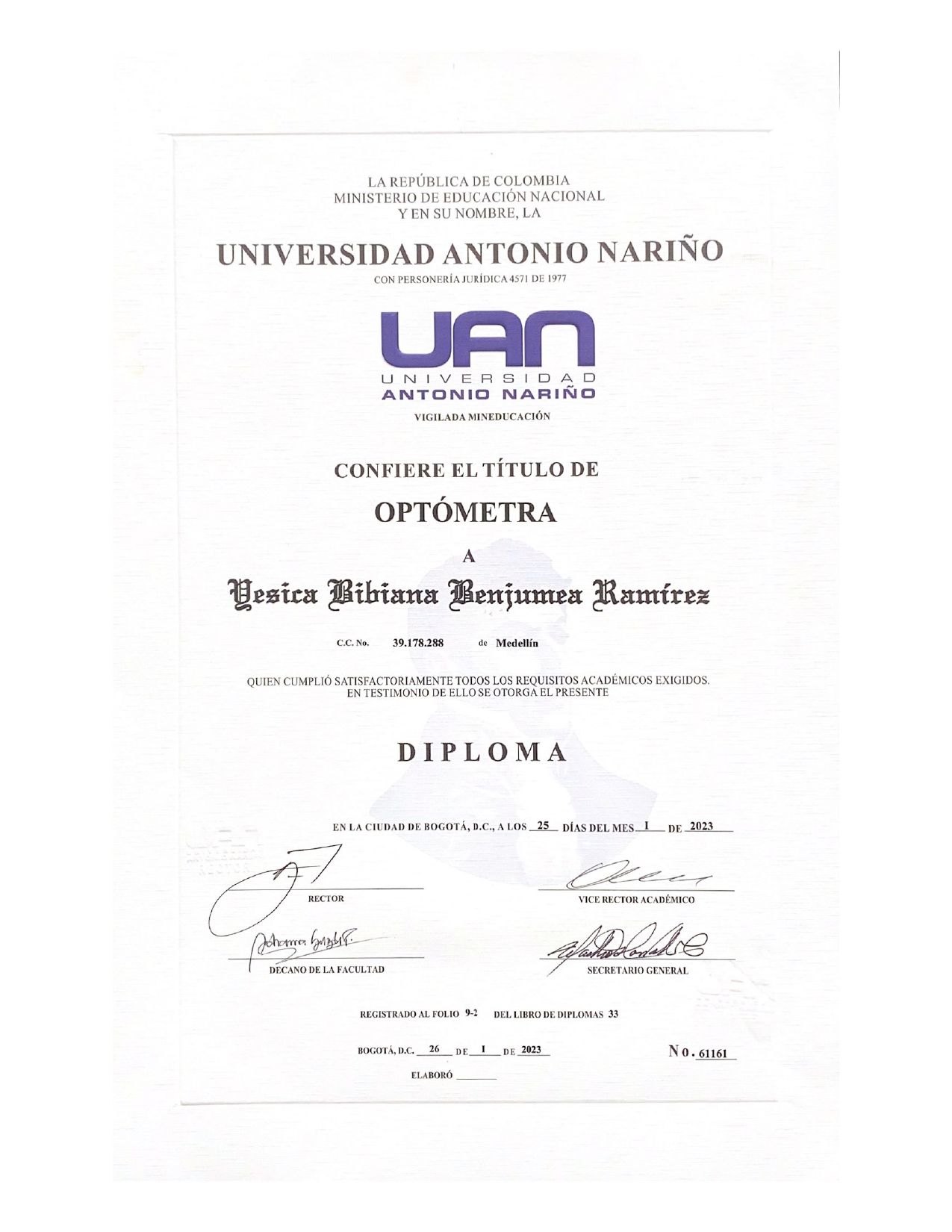 - Universidad Antonio Nariño 2017-2023 / OPTOMETRA